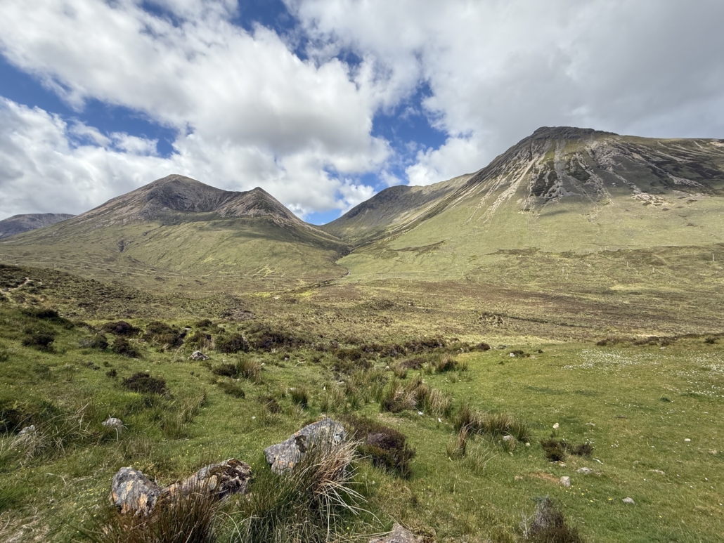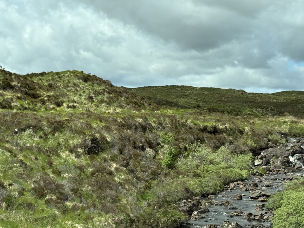 The natural beauty of the Isle of Skye is stunning. We visited late-May, hoping to be there before the midges and tourist season (never mind that we were also tourists), but with a chance of some cooperative weather.  While it was another place on the list where ancestors once lived, I would have wanted to visit there regardless. It felt a lot like parts of the Pacific Northwest where you can feel the land “breathe.”