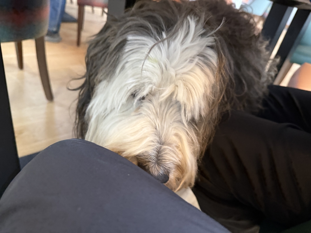 Friendly dog at the Sprig Restaurant/Lounge. We ended up hanging out with the dog’s humans for much of the night, celebrating Kevin’s 50th birthday.