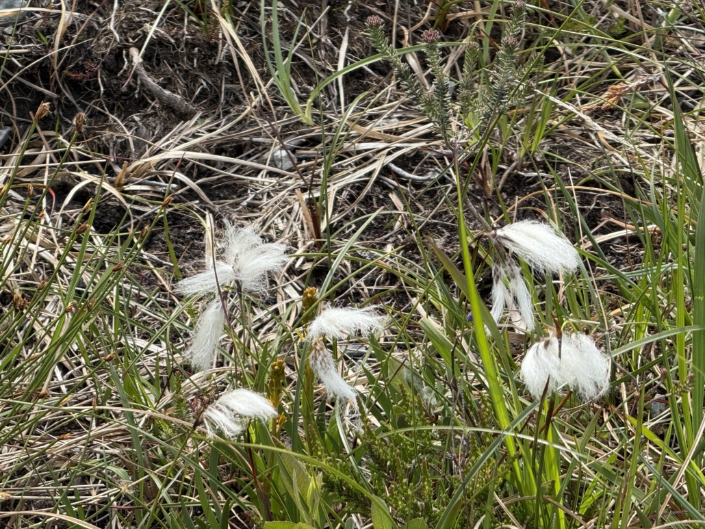 White cotton-like poofs in region of Fairy Pools Isle of Skye – so many of these fluttering in the breeze but keeping hold on their stems.